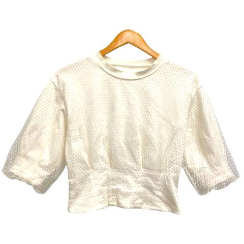 【中古】リリーブラウン Lily Brown カットソー クルーネック タック レース ロゴ刺繍 七分袖 F 白 ホワイト レディース