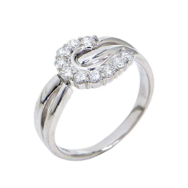 0.5ct天然ダイヤモンドリング 18号 Pt900 ハーフサークル カーブリング ウェーブ 波模様 10Pダイヤ プラチナ 指輪 地金8.1g 中古 送料無料