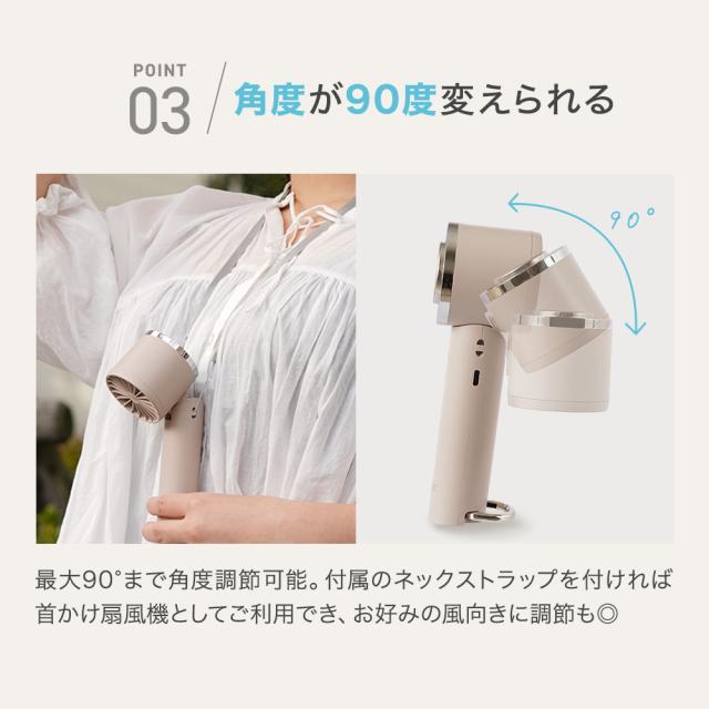 | 使用上の注意 | ・ご使用前には必ず取扱説明書をよく読んでからご使用ください。 ・乳幼児や小さなお子様が使用しないようにご注意ください。また、お子さまの手の届かない場所に保管してください。 ・送風口や吸気口、可動部に指を入れないようご注意ください。 ・箸や棒状のものを入れないようご注意ください。 ・髪の毛が巻き込まれないようにご注意ください ・本製品を高所から落としたり、ぶつける等の強い衝撃を与えたりしないでください。万が一、落下した場合はただちに使用を 中止してください。 ・本製品を火気や高温になる場所の近くに置かないでください。火災や変形、破損の原因となるおそれがあります。 ・充電の際は、5V/1A以上の出力電流を持つ充電器を使用し、付属のType-C電源ケーブルを使用してください。 ・本製品は防水仕様ではありません。水につけたり濡らしたりしないでください。 ・本製品を分解または改造しないでください。 ・バッテリーが膨張している場合は使用を中止してください。 |