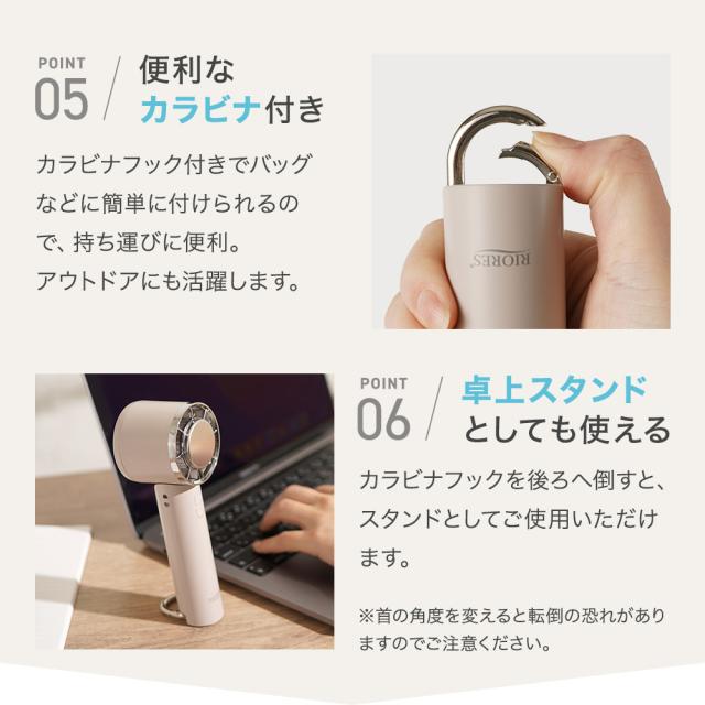 【商品レビューでポイント+5%】 冷却プレート付 ハンディファン 強風 静音 充電式 卓上 携帯兼用 小型扇風機 熱中症対策 防災グッズ RIORES