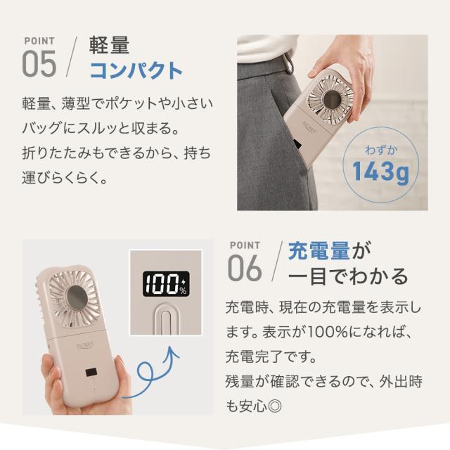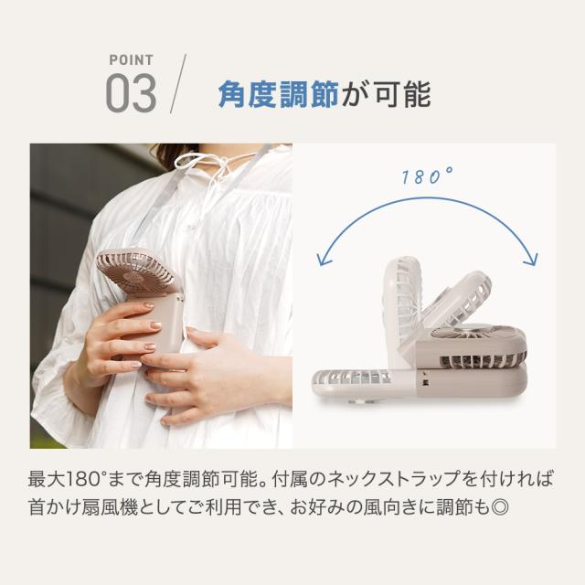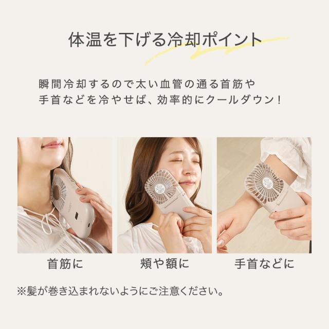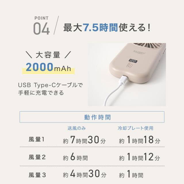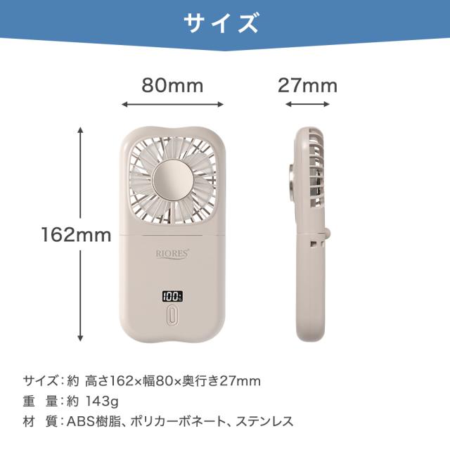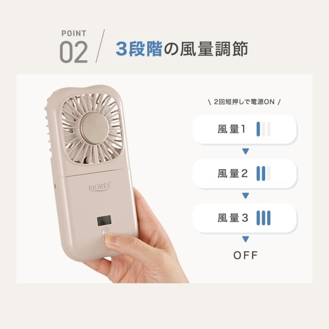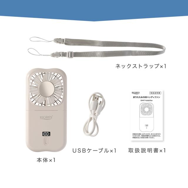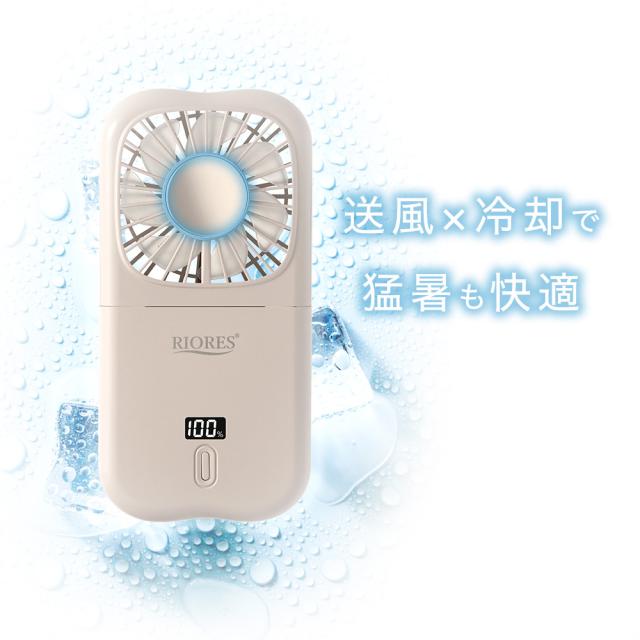 【商品レビューでポイント+5%】 冷却プレート付 ハンディファン 首かけ 卓上 携帯扇風機 充電式 折りたたみ 強風 長時間 USB給電 RIORES