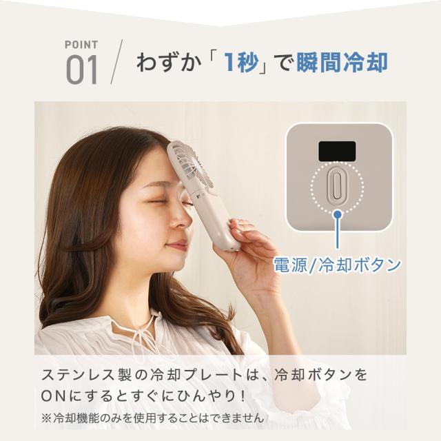 | 商品の特徴 | わずか1秒で瞬間冷却のプレート 3段階の風量調節 角度調節が可能 液晶画面で充電残量が確認できる |