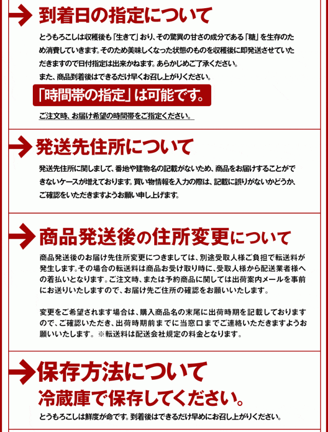 ■賞味期限:鮮度が命のとうもろこしですので、到着後はお早めにお召し上がりください。