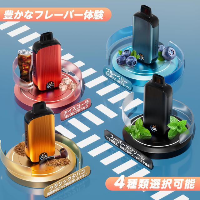 【選べるフレーバー】 ・スーパーメンソール:甘さ控えめでリフレッシュ感抜群 ・クラシックタバコ:愛煙家に最適な風味 ・アイスコーラ:夏にぴったりの爽快感 ・ ブルーベリー:万人に愛される人気フレーバー |