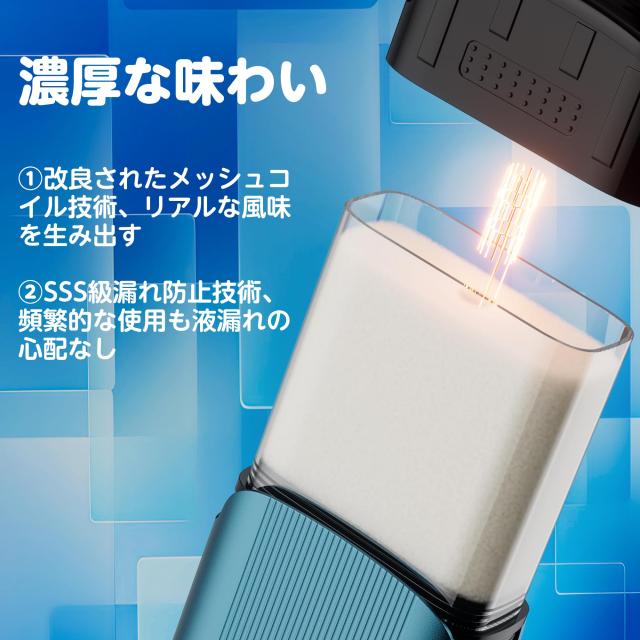 【濃厚な味わい】 ・ 改良されたメッシュコイル技術、リキッドが急速に蒸気化し、濃密なミストがリアルな風味を生み出す。 ・ SSS級漏れ防止技術により、頻繁に使用する際の漏れの心配がありません。 |