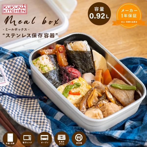 弁当箱 ステンレス製 ククナキッチン 0.92L ランチボックス ミールボックス 電子レンジ オーブン グリル 冷凍 冷蔵 汁物OK 4サイズ ニオイ 密閉 液漏れしない