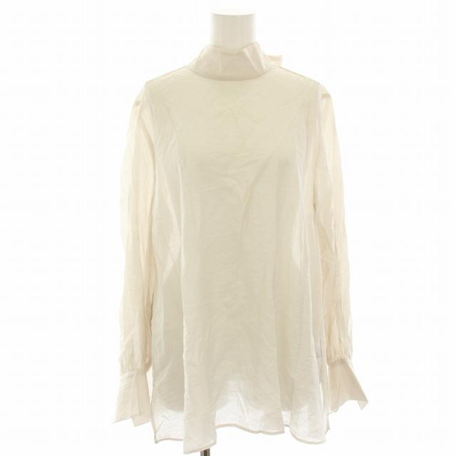 【中古】アンフィ—ロ UNFILO スタンドカラーブラウス シャツ 麻 リネン混 プルオーバー 長袖 バックリボン M