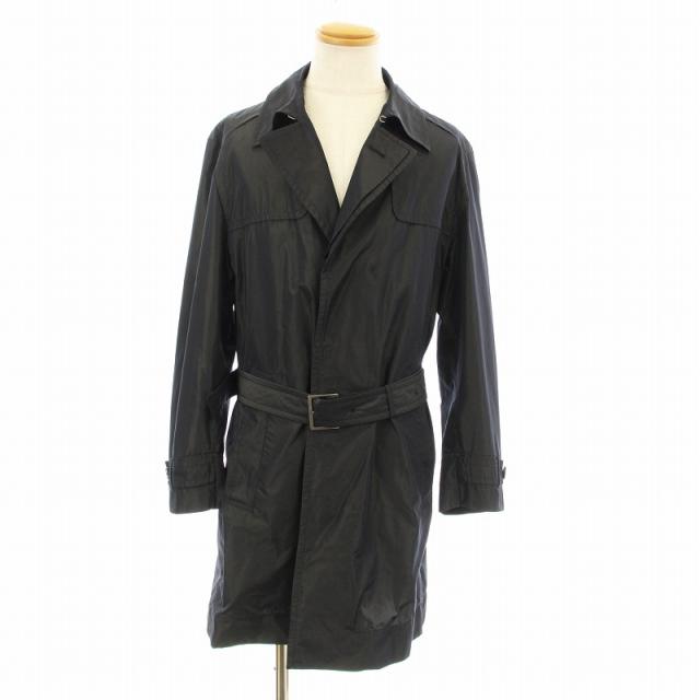 【中古】ヒューゴボス HUGO BOSS トレンチコート ロング ベルト付き I48 黒 ブラック 57-621-054 /KU メンズ