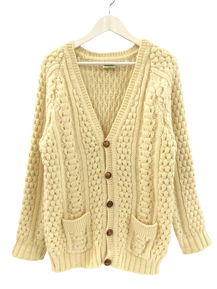 【中古】Bonner Of Ireland ニットカーディガン フィッシャーマン ケーブル編み ウール アイボリー メンズ