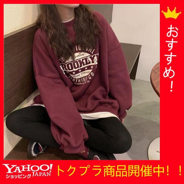 トレーナー レディース プリント 英語文字 ロゴ プリントトレーナー 重ね着風 ゆったり トレーナー スポーツウェア 長袖 可愛い ゆったり 春秋 薄手