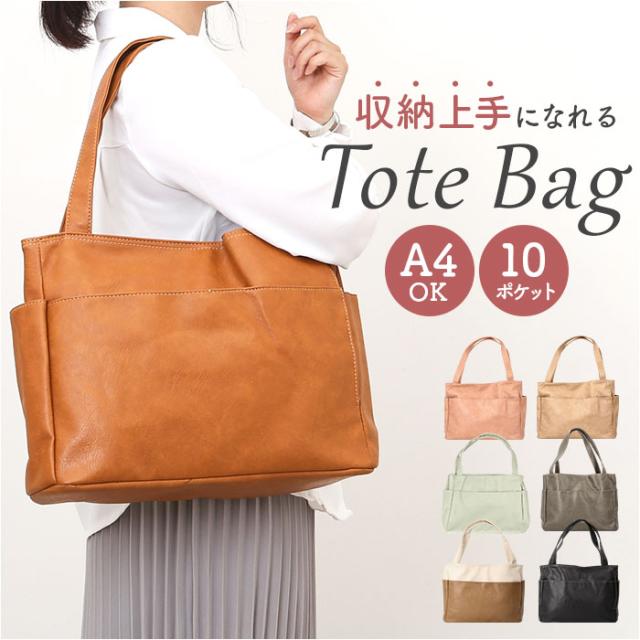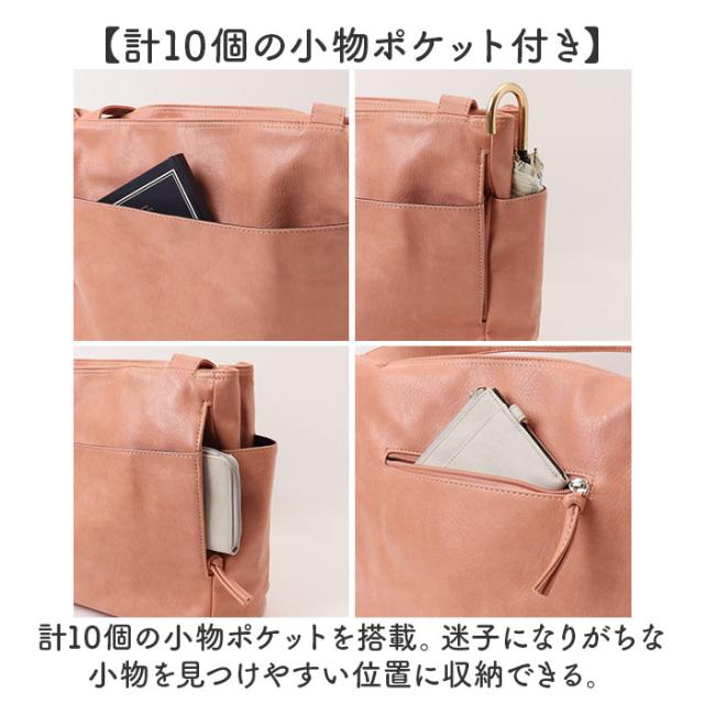 トートバッグ レディース 通販 トートバック ポケット多い ポケット多め ポケットたくさん 合皮 フェイクレザー TG-100 多収納 カバン かばん 鞄 おしゃれ オシャレ きれいめ かわいい フェミニン 大人可愛い 通勤 レディースバッグ