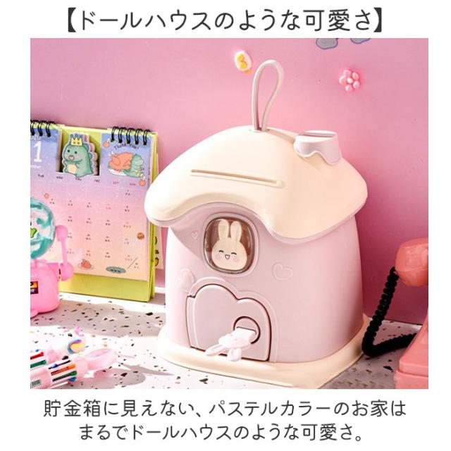 貯金箱 子供 女の子 かわいい 通販 子供用貯金箱 子ども用貯金箱 コインボックス 手提げ金庫 金庫 おもちゃ 大容量 宝物 宝箱 玩具 鍵 おこづかい 家型 ハウス型 子ども用 こども