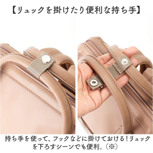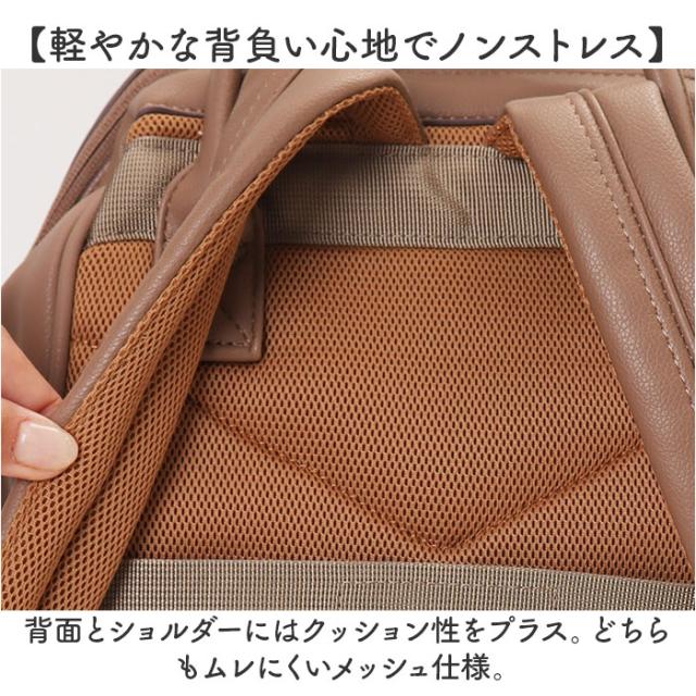 | 商品説明 | 【お出かけの相棒にぴったり】 ・気軽に持ち出せて、色んなシーンで!「anello RE:レトロ 口金リュックS」。 【同色コンビで上品な雰囲気に】 ・RETROシリーズをリニューアル!うっすらシボ感のある合皮とマットなシボ合皮をミックス♪ 【ガバッと開く口金入りファスナー】 ・開口部は口金仕様のダブルファスナー式。大きく開いて中身を確認しやすく、出し入れスムーズ。 【A4対応で荷物をひとまとめ】 ・A4がすっぽり。程よいマチを設け、デイリーに使いやすい容量約10Lサイズ。 【ノートPCやタブレットを持ち運び】 ・小さめのノートPCやタブレットを収納できる、クッションポケット付!通勤・通学や出張にも。 【サクッと取り出せて迷子知らず】 ・クッションポケットの他にも、複数のポケットを配置。バッグの中で、小物を探す手間が不要。 【軽やかな背負い心地でノンストレス】 ・背面とショルダーにはクッション性をプラス。どちらもムレにくいメッシュ仕様。 【キャリーオンできて移動もラクラク】 ・背面の面ファスナーベルトを、キャリーのハンドルに通せるキャリーオンタイプ。 【リュックを掛けたり便利な持ち手】 ・持ち手を使って、フックなどに掛けておける!リュックを下ろすシーンでも便利。 (※)持ち手はスナップボタンでまとめることが可能です。 【面倒なお手入れ不要で手軽に使える】 ・本革のような特別なお手入れは必要なく、汚れなどは拭き取るだけ。普段使いに最適。 【シンプルなジェンダーレスデザイン】 ・性別や年代問わず持ちやすい仕上がり。コーデを選ばない落ち着きのあるカラーをラインナップ。 【ポケット仕様】 ・内側:面ファスナーベルト付きクッションポケット×1、オープンポケット×2 ・前面:ファスナーポケット×1 ・サイド:オープンポケット×2 ・背面:シークレットポケット×1 |
