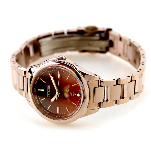 正規品 7年保証キャンペーン 送料無料 シチズン クロスシー ダイチコレクション チタン 電波ソーラー 日本製 エコドライブ電波 エコ・ドライブ電波 レディース 腕時計 EE1004-73W CITIZEN xC daichi collection Titania Happy Flight アナログ ブラウングラデーション ピンクゴールド ◆前を向く女性を応援するエンパワーウオッチブランド、シチズン xC(クロスシー)。大地の土をイメージした温かみのあるグラデーションカラー。ハンサムな印象の中にも、女性らしさを感じさせるdaichi collectionのモデルです。未来に続く広い大地をコンセプトにした、シンプルでハンサムなデザイン。サン&ムーン機能を搭載しています。文字板は、土をイメージした温かみのあるテラコッタからブラウンに変わるグラデーション仕上げ。印象的な色を身に着けたい方にもおすすめのカラーです。凜とした強さを感じさせる針のフォルムとオールバーインデックスが、ハンサムでクリーンな印象を、よりいっそう際立たせます。 発売日:2025年7月発売