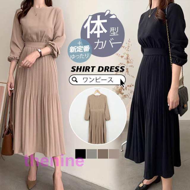 ワンピース レディース 秋 春 プリーツ マキシワンピース ロングワンピース ママスーツ ゆったり おしゃれ 30代 40代 50代 体型カバー