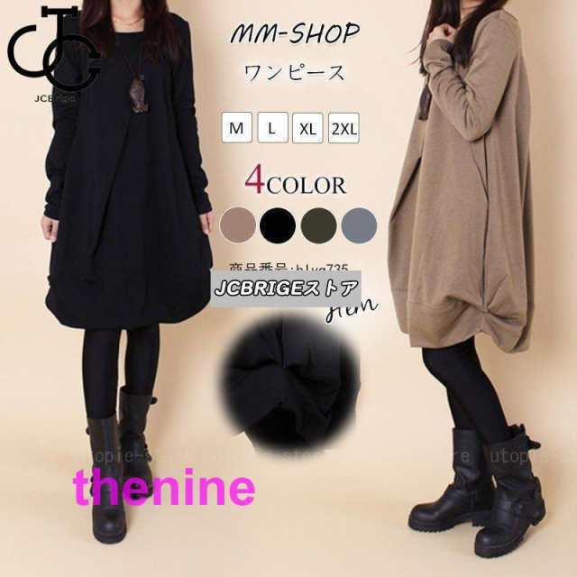 ワンピース 膝丈 レディース 長袖 Aライン ワンピース フレア ゆったり ワンピ 体型カバー チュニック 大きいサイズ 無地 ポッケト付き 秋 冬 30代 40代