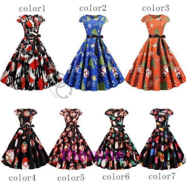 クリスマスドレス 大人 膝丈ドレス 細身 クリスマスワンピース 大きい裾ドレス サンタ サンタクロース 雪だるま プリントドレス ダンス衣装 二枚