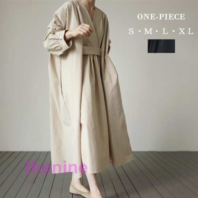 ワンピース レディース ロングワンピース 無地 プリーツ Vネック 春秋 バルーンスリーブ 長袖 プルオーバー チューニック コーデ ゆったり 春 秋 通勤 通学