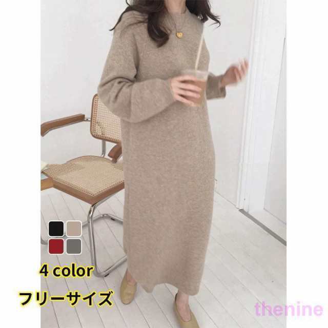 キーワード ロングワンピース ニットワンピース レディース 秋冬 ワンピース ラウンドネック ニット ワンピース ゆったり 可愛い 40代 通勤 ミモレ丈