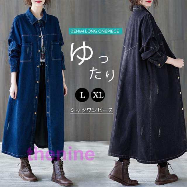 デニムロングコート デニム ロング ロングカーディガン デニムシャツ ワンピース レディース 羽織 アウター トレンチコートロング丈 ゆったり 前開き 上品 秋物