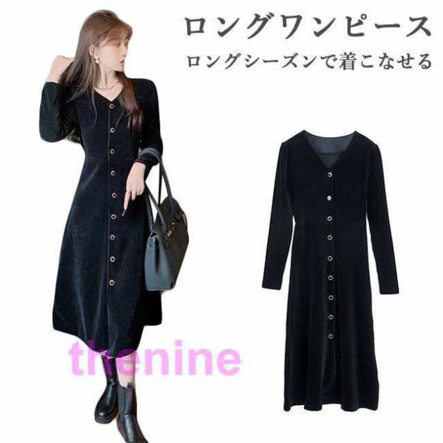 ワンピース 長袖 レディース ロングワンピ コーデュロイ Vネック スリム タイトワンピース コーデュロイワンピース 春秋 長袖ワンピース 冬