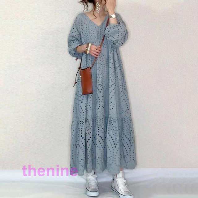 《》コットンレース ワンピース カットワーク刺繍 大人かわいい コットン レースワンピース ワンピース レディース ロング丈 長袖 パンチングレース
