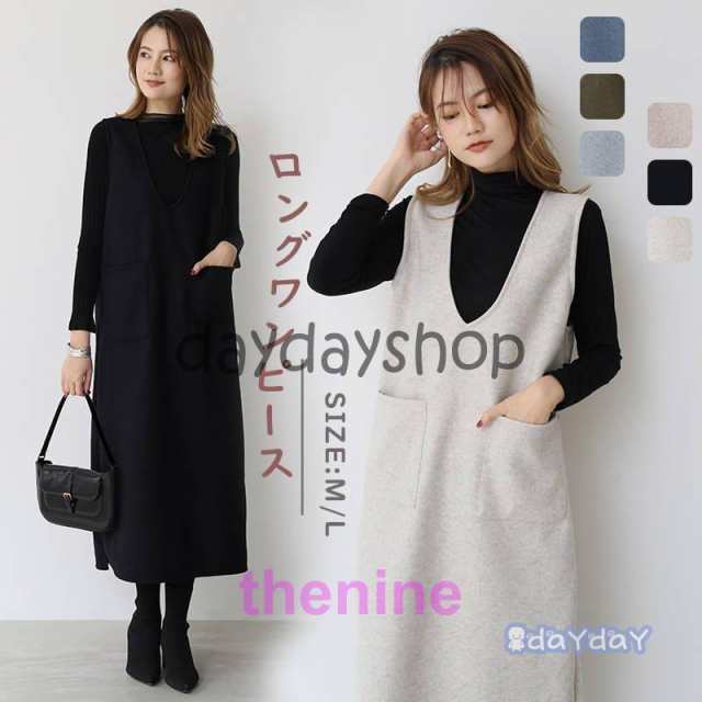ワンピース Vネック ミディ丈 マキシ丈 ノースリーブ ジャンパースカート 膝丈 結婚式 チュニック ベスト キャミワンピ 大人 マタニティ おしゃれ 秋冬
