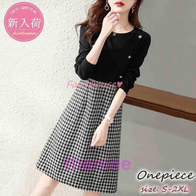 連携キーワード:ワンピース レディース 40代 きれいめ 膝丈ワンピース 秋服 長袖ワンピース チェック柄切り替え Aラインスカート オシャレ韓国風 大人 通勤OL 30代 50代