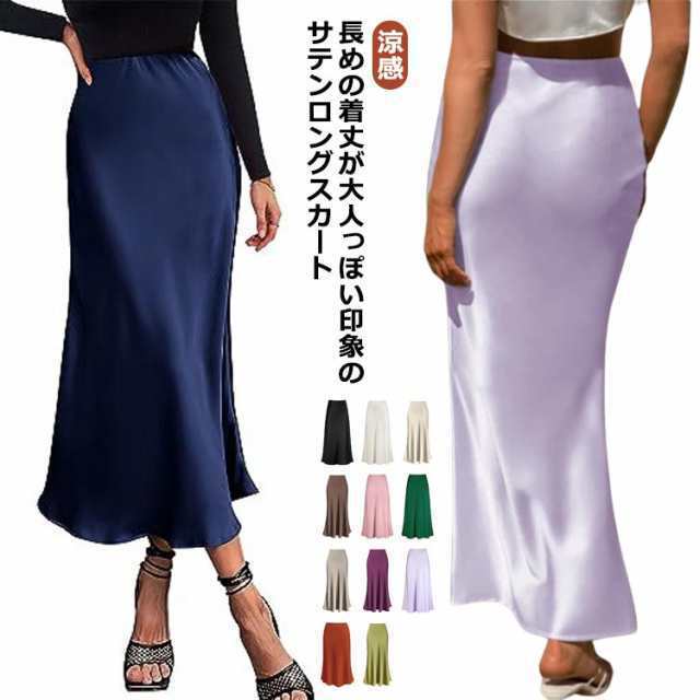 | 長めの着丈が大人っぽい印象のサテンロングスカート。 マーメイドシルエットが、女性らしいシルエットを際立たせてくれます。 マキシ丈なので体系カバーも◎ ウエストストレッチ バイアス取りすること裾に向かって緩やかに広がりでがる控えめなフレアシルエットが、女性らしさを引き立てています。 合わせるトップスを選ばないので、幅広いスタイリングに重宝します。 | |
