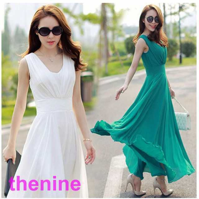 マキシワンピース シフォンワンピース ドレス マキシ丈ワンピース 結婚式 白 ホワイト 春 ロング ノースリーブ マキシワンピ ワンピース レディース