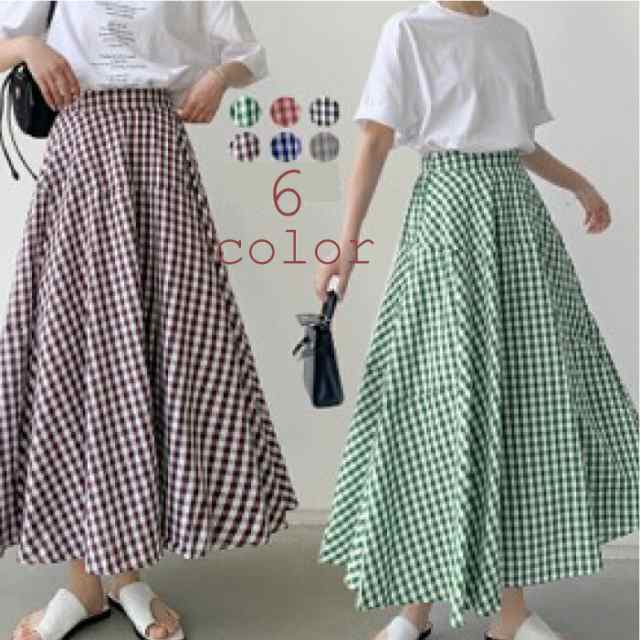 ギンガムチェック切り替えフレアスカート マキシ丈 春 夏 Aライン フレア ロングスカート マキシスカート フレアスカート ティアードスカート ハイウエスト チェック柄 ■n1652■ 韓国ファッション オールシーズン お洒落 カジュアル かわいい かっこいい 無地