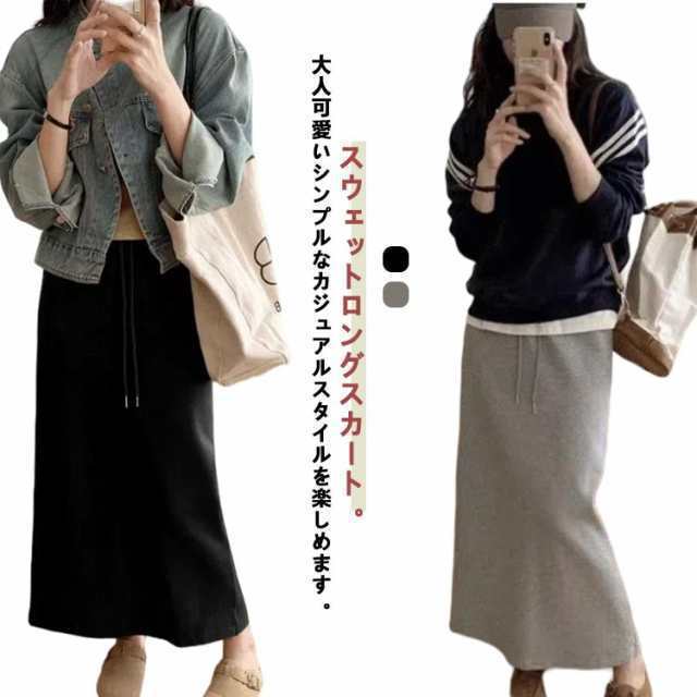 ロングスカート 冬 カジュアル 春 スウェット スウェットスカート スウェットスカート 秋 タイトスカート スカート マキシ丈 ウエストゴ