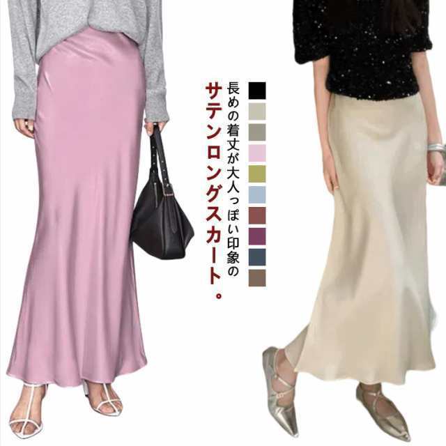 通勤 サテン とろみ きれいめ 落ち感 ロングスカート エレガント マーメイドスカート フレア サテン マーメイド スカート 上品 マキシ丈 韓国風 フェミニン 大人 美脚 レディース 体型カバー 20代 30代 40代