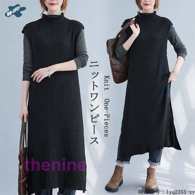 ニットワンピース ワンピース ニット レディース ロングワンピース 無地 マキシワンピース ベスト 体型カバー 着痩せ ロングベスト 冬 秋 ノースリーブ 秋冬 ゆったり プルオーバー 着痩せ カジュアル 部屋着 ルームウェア シンプル ベーシック コーデ おしゃれ ゆるっと 通勤 秋