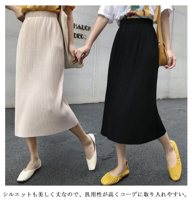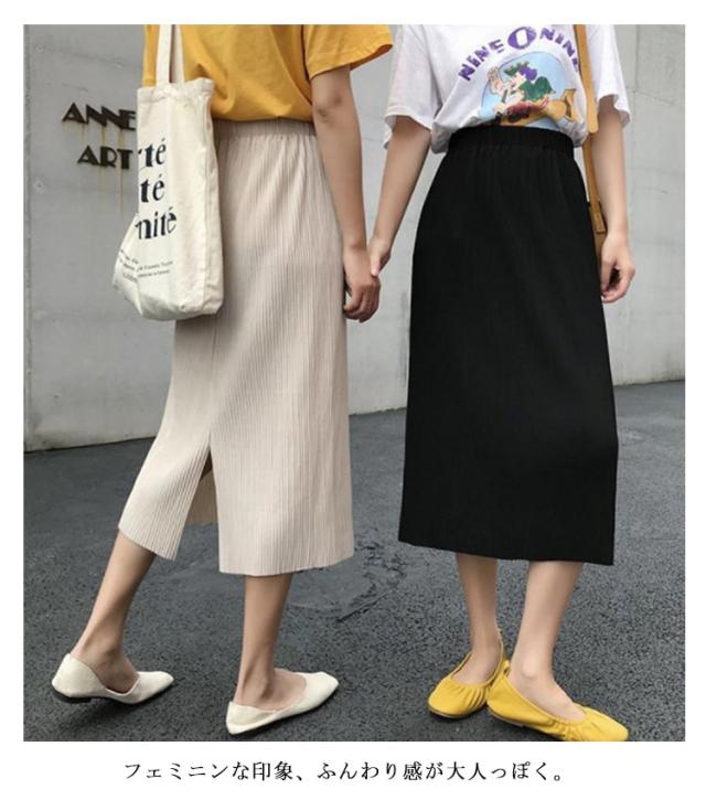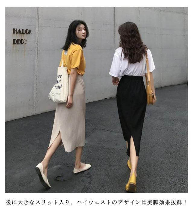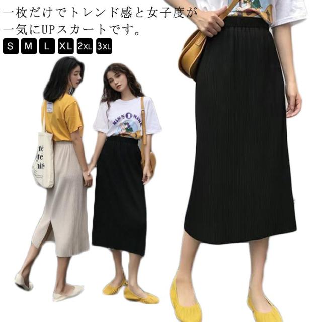 タイトスカート スリット ロング アイスシルク スカート ロングスカート ミモレスカート ハイウェスト バックスリット入り プリーツスカート 接触冷感 きれいめ カジュアル かわいい 春 夏 韓国ファッション S M L XL 2XL 3XL