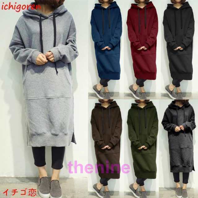 パーカーワンピース ロング丈 レディース ワンピース 秋 長袖 パーカー スウェット フード付き スリット カジュアル 体型カバー 無地 お洒落 通勤 旅 30代 40代