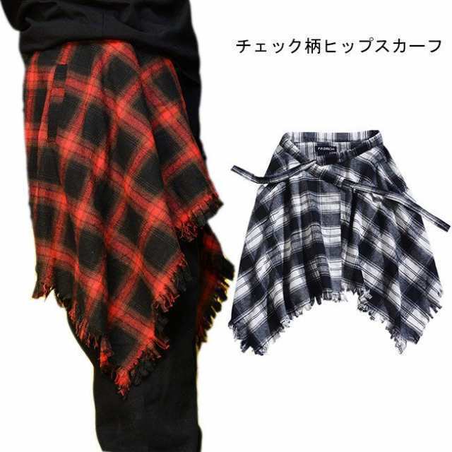 ヒップスカーフ ヒップ巻き チェック柄 ベルト 巻きスカート 男女兼用 ファッション小物 スカート ダメージ加工 ダンス衣装 ヒップホップ