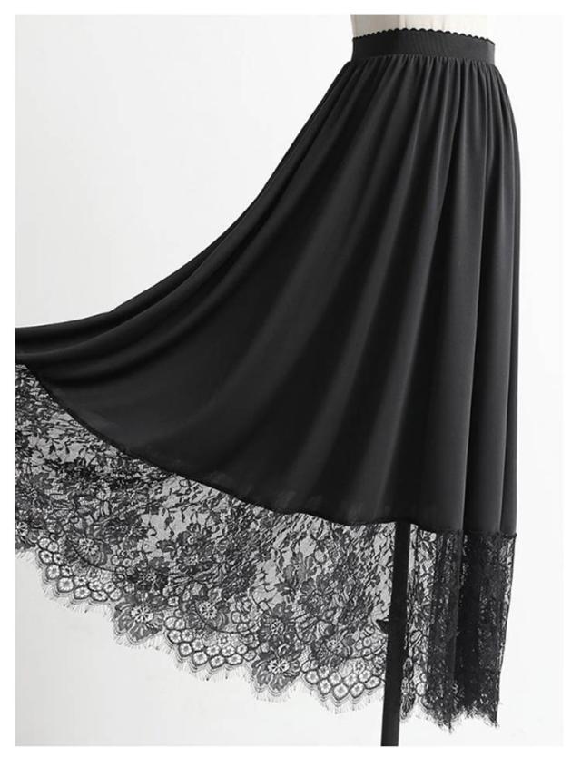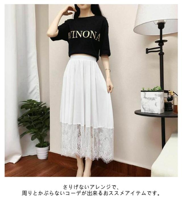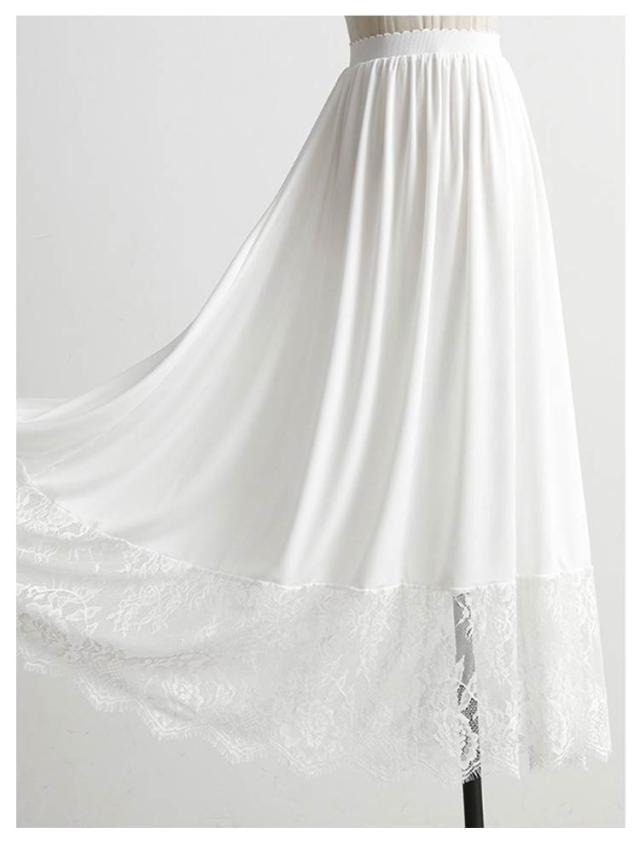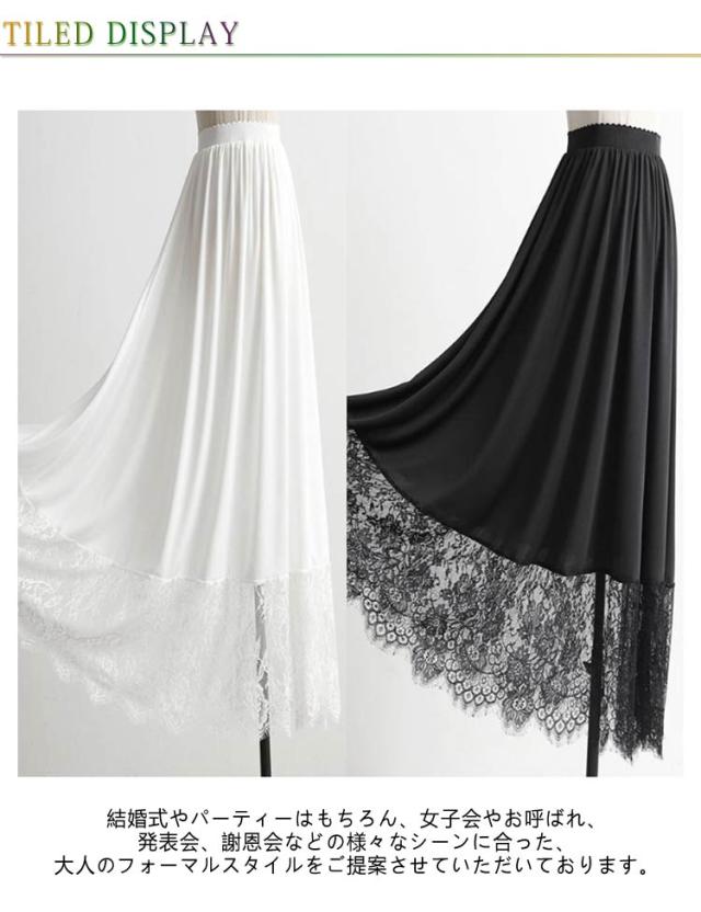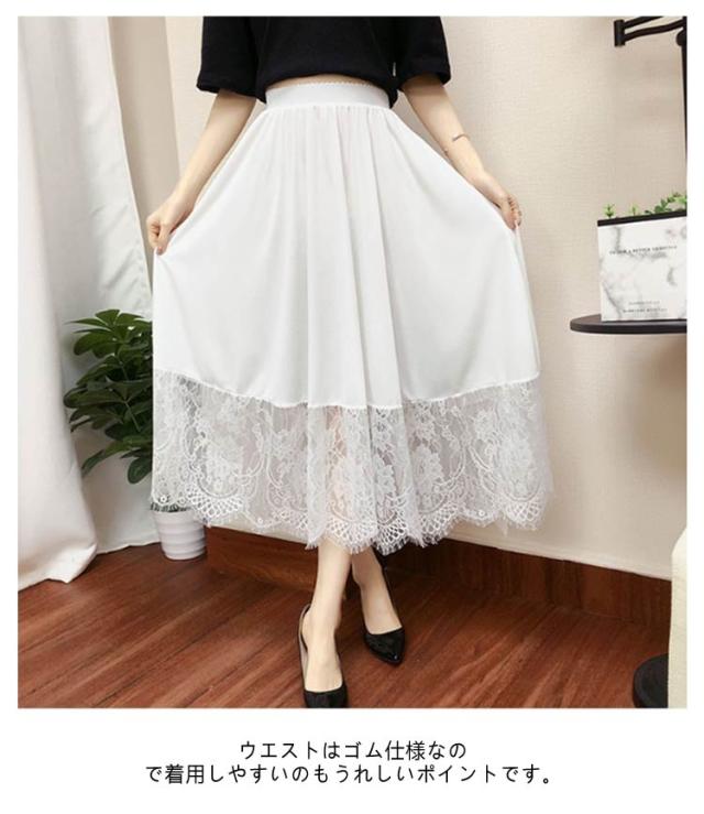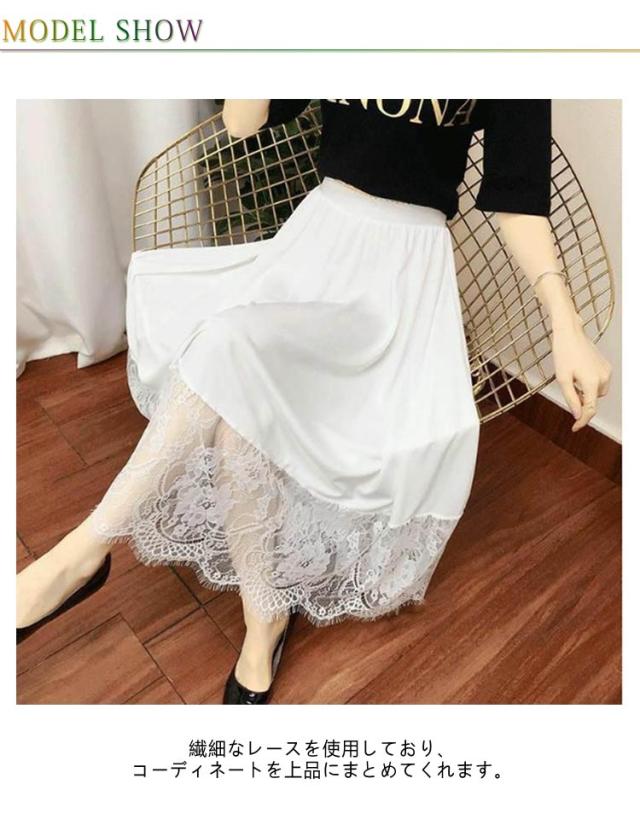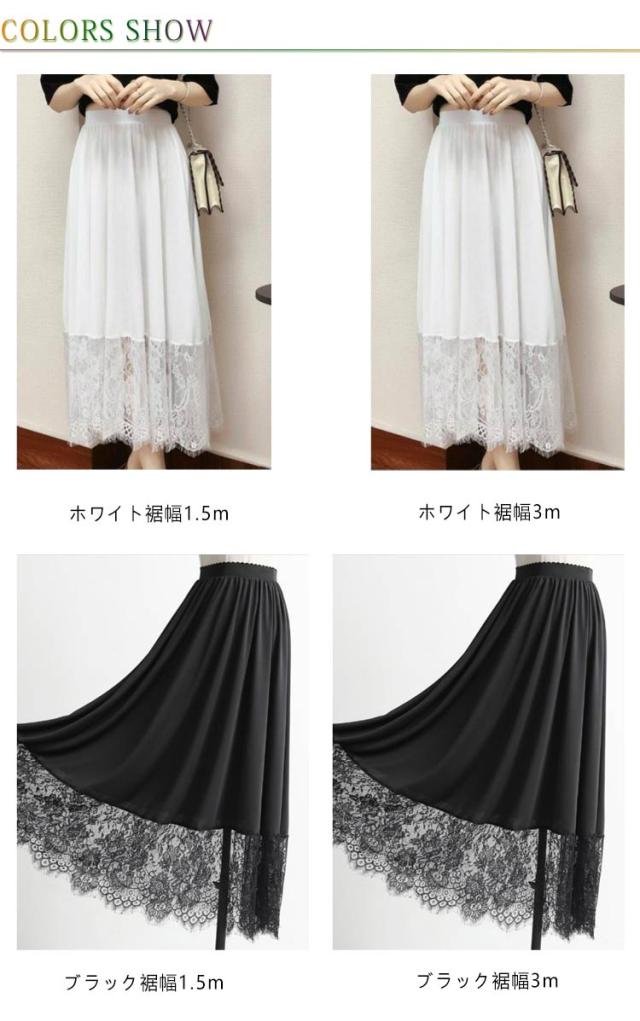 レース 裾レース インナー スカート 丈6サイズ ブラック ホワイト (ペチスカート 透け防止 白 裾2サイズ インナースカート ペチ 黒 ワンピース 見せる ペチコート フリル アンダースカート インナーペチコート 裾 裏地 ワンピ チラ見せ