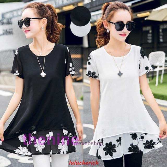 チュニック ワンピース カットソー レース Aライン シフォンチュニック 半袖 花柄 トップス 夏 レディース ブラック ホワイト