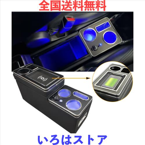 【最新型コンソールボックス】:1.ブルーのLED灯が付き、夜車内が暗い時、小物を探すことに便利になります。車内の灯を開けることが要らなく、運転の安全を確保する。2.前席+後席に 5口USBポートを増設、後部座席の乗客にも便利になります。3.収納も大容量!ティッシュボックスやマスク、スマホなど様々な物を収納できます。