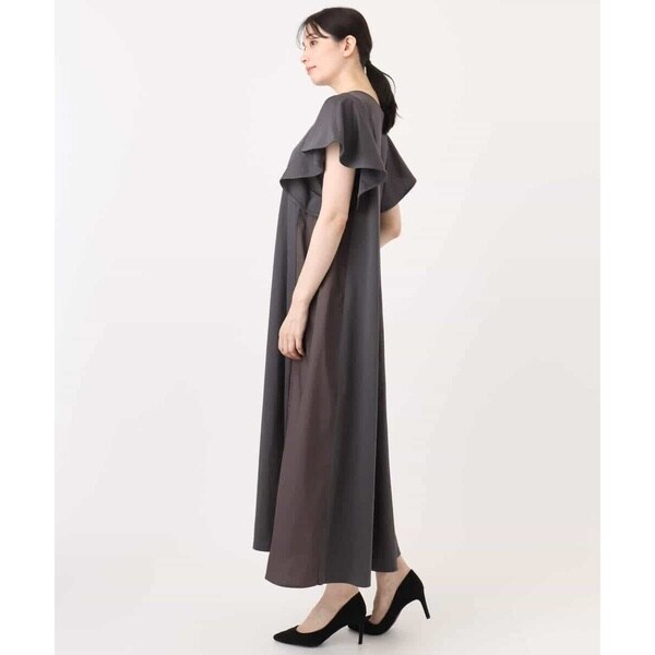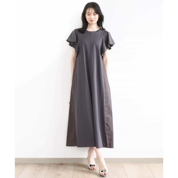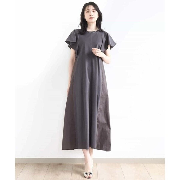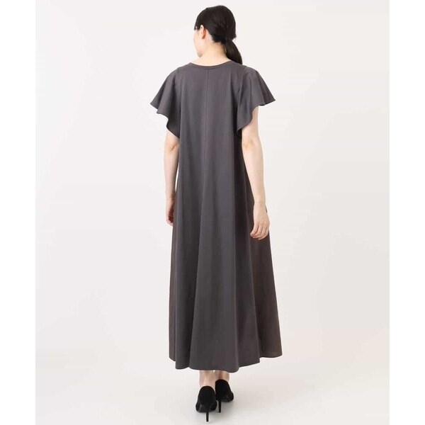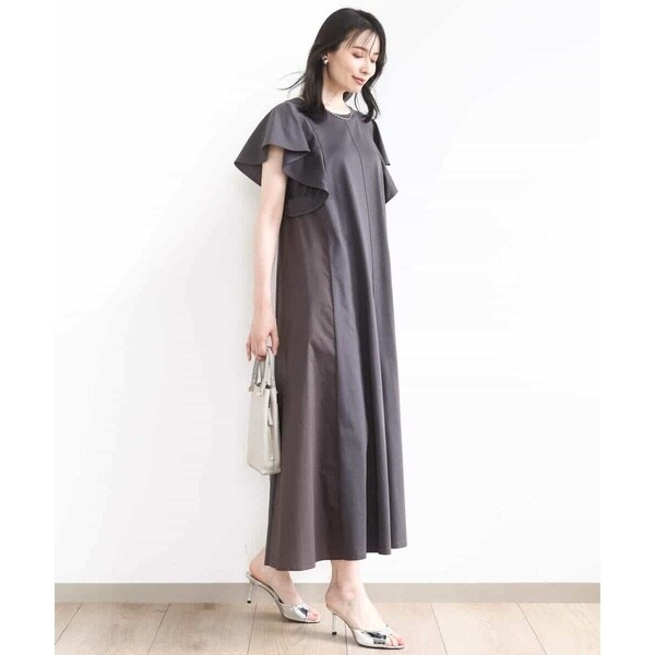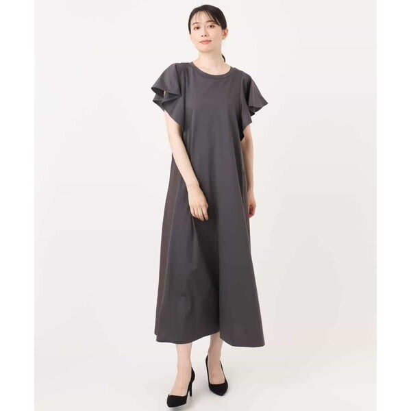 ラッフルスリーブデザインが大人可愛いワンピース。きれいに広がるAラインシルエットはラクチンな着心地なのに一枚で素敵に決まります。すっきり見えな上に、二の腕、ウエスト、ヒップラインと気になる部分をカバーしてくれるのも高ポイント。