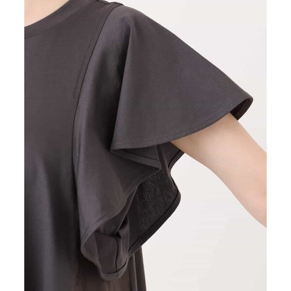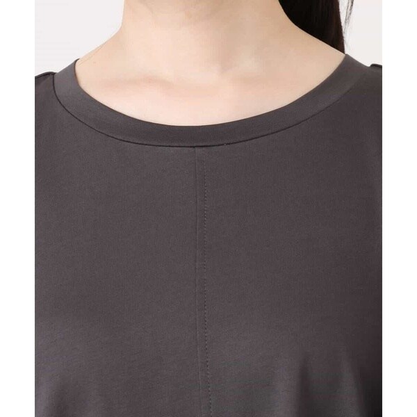 快適な着心地のコットン天竺の素材を使用。程よい肉感があり、きれい見え。サイドは光沢のある別布切替えで、デザインポイントにも。