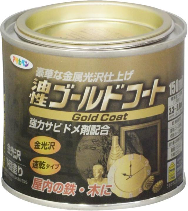 アサヒペン 塗料 ペンキ ゴールドコート 150ml ゴールド 油性 屋内用 1回塗り 金光沢 速乾 強力サビドメ剤配合 日本製
