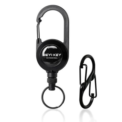 カラビナ 小型 キーホルダー キーリング リールキーホルダー 強力 キーチェーン 金属ワ 伸縮自在 登山 釣り ガイロープ キーホルダー 多用途 携帯便利 ブラック 楕円形のバックルヘッド