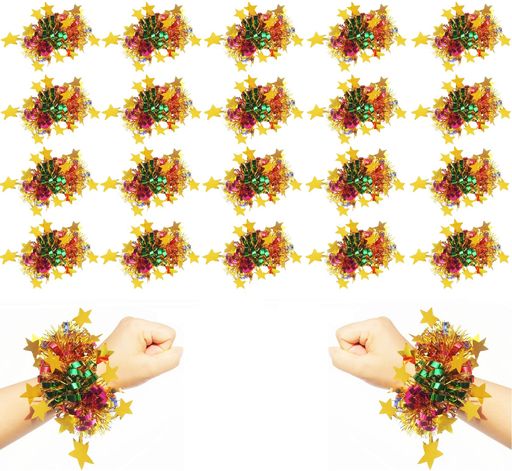 LAKYMISY チアポンポン 応援ポンポン 20個セット うでわ ポンポン キラキラ星 カラー ハンドフリーポンポン 子供 ダンスアクセサリー 手飾り 髪飾り チアリーダー 運動会 体育祭 ダンス 応援…