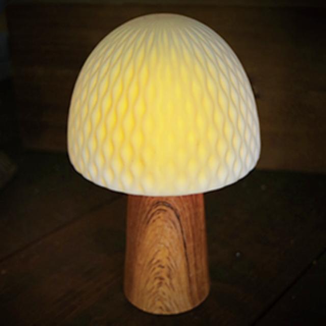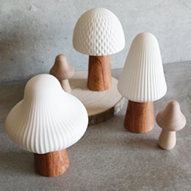 コロンとした丸みのあるフォルムがほっこり可愛い、きのこ型のセラミックライトです。磁器製の傘から漏れるふんわりとしたやわらかな光は、お部屋の間接照明にぴったりです。