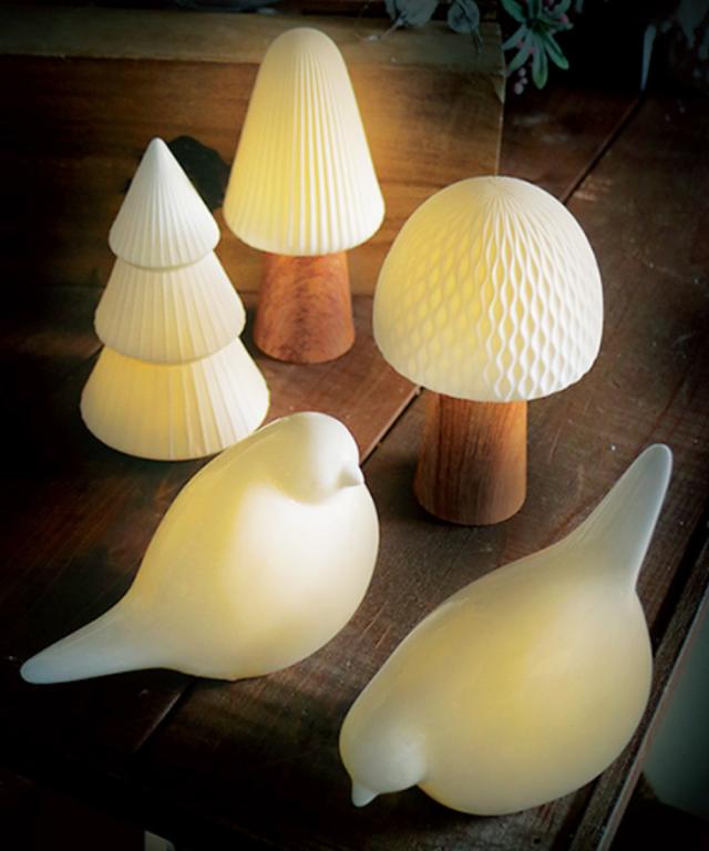 シリーズで並べて置くと、さらに可愛い雰囲気が広がります。明かりを灯すときも、消したときも「置くだけでアート」として素敵な空間を彩ります。