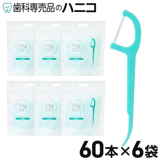 Shu&Shu フロス&ピック 360本 (60本×6袋) ハンドル付きフロス F字型 ノンワックス 歯科専売品