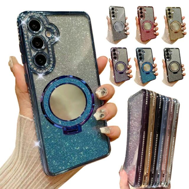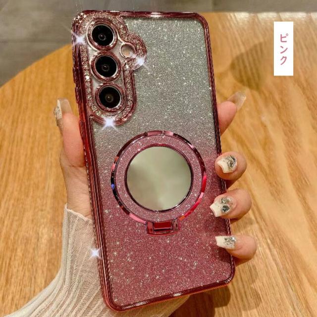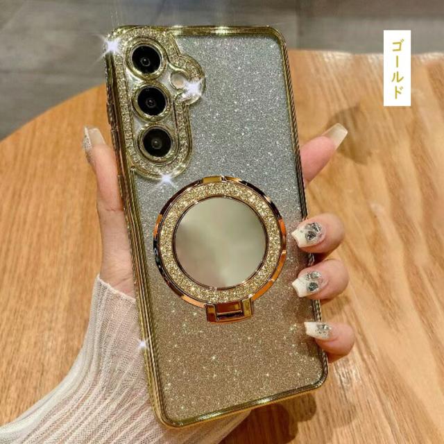 Galaxy A36 5G ケース カバー ラインストーン メッキ TPU ソフトケース ミラー付き 分離型スマホリング付き きらきら かわいい 可愛い お洒落 グリッター エレガント Samsung サムスン ギャラクシー A36 5G おすすめ