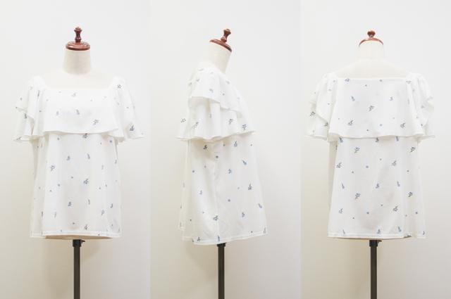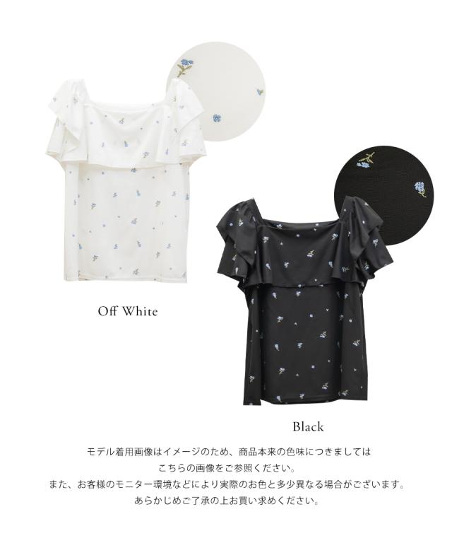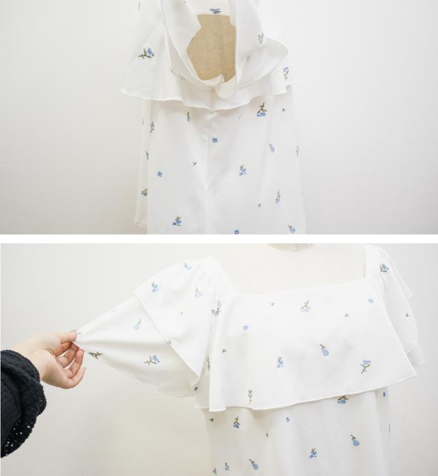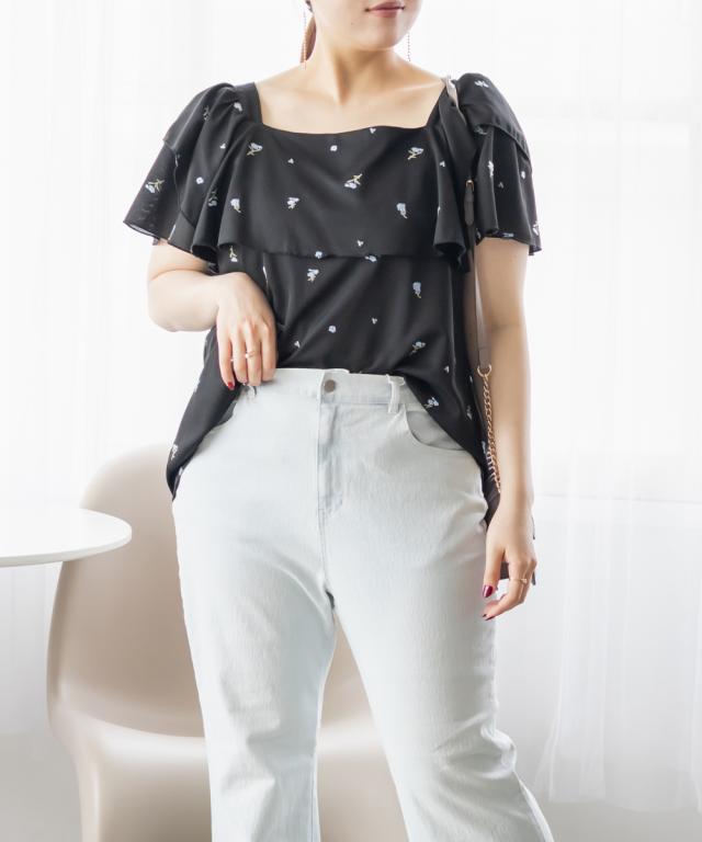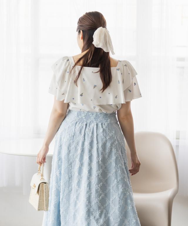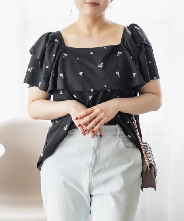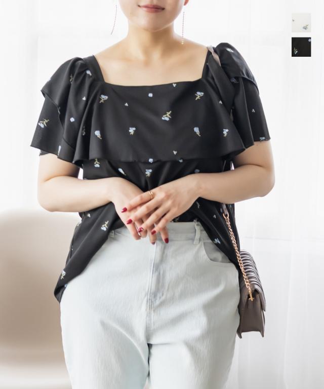 大きいサイズ/レディース/3L/4L/フラワー刺繍ワッフルジャガードフリルブラウス